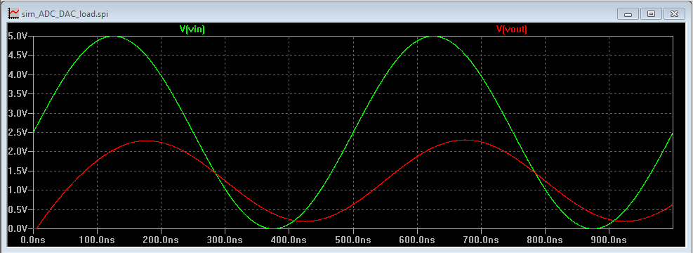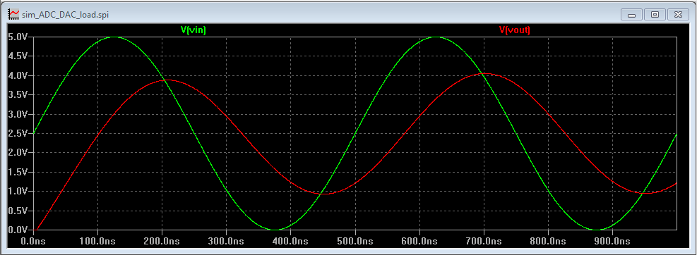 Setting the fequency of the AC input signal to 4 MHz (double from the original 2 MHz) creates an expected result in the simulation results.