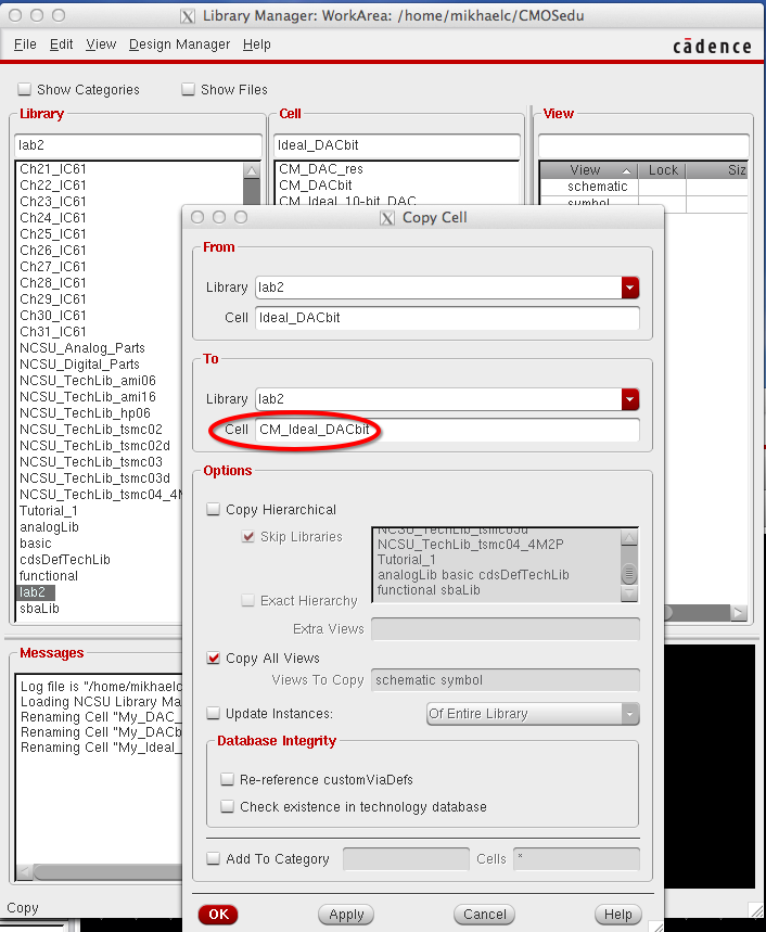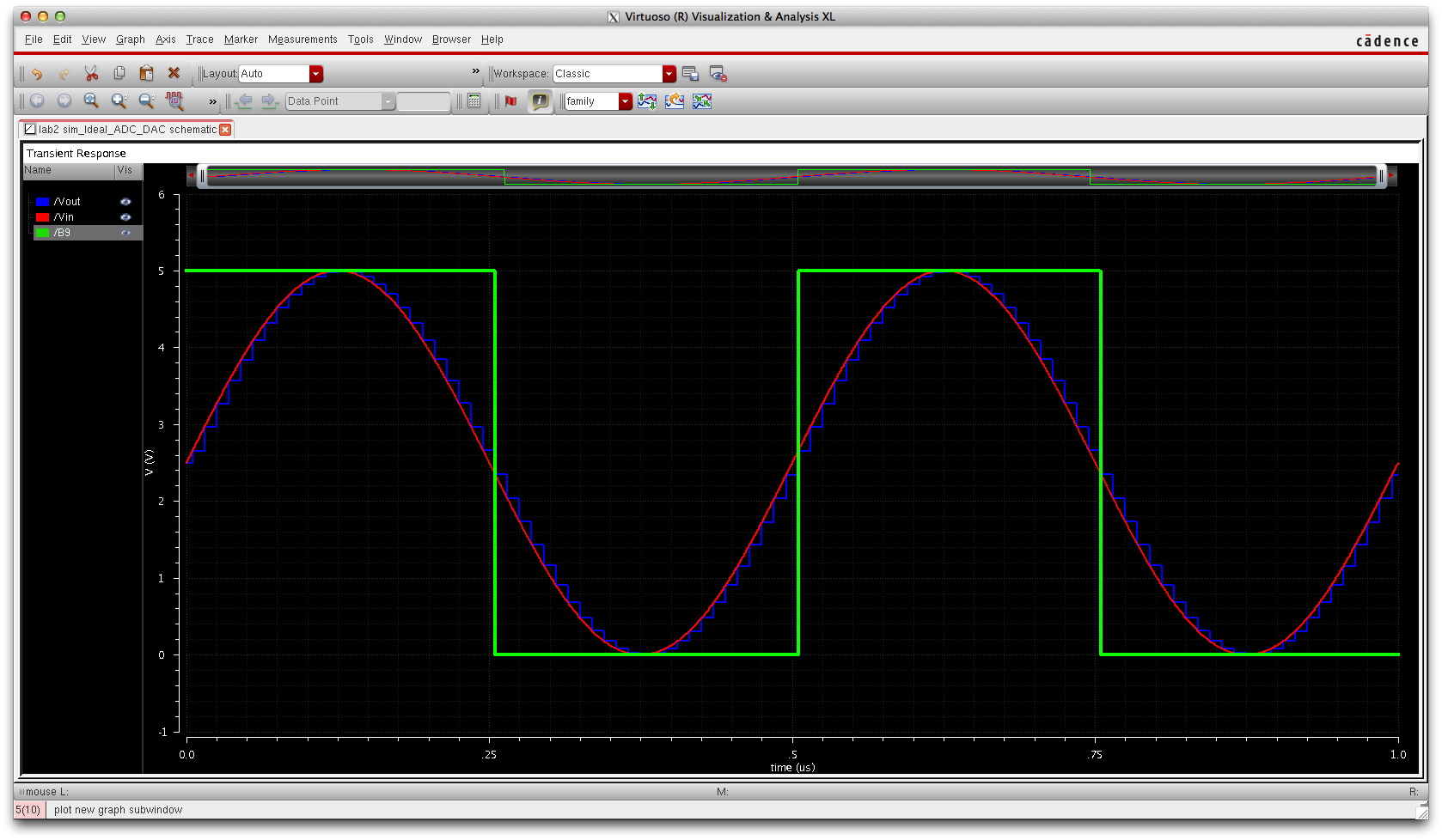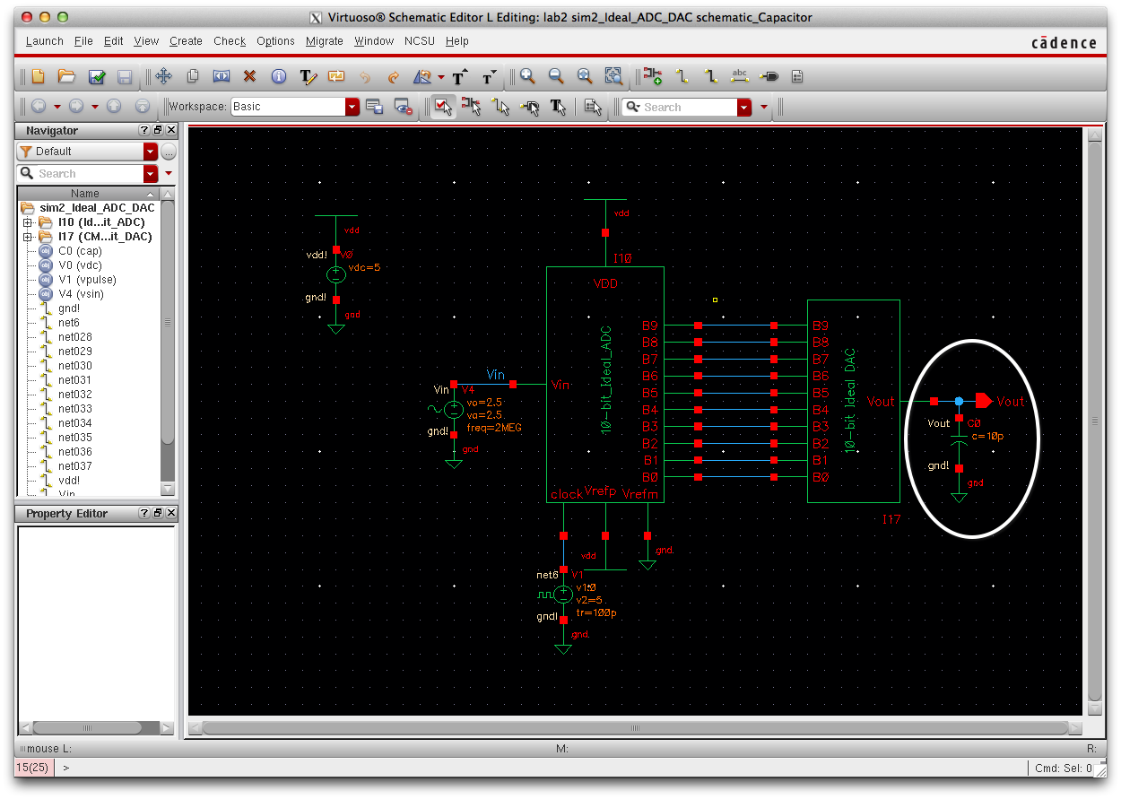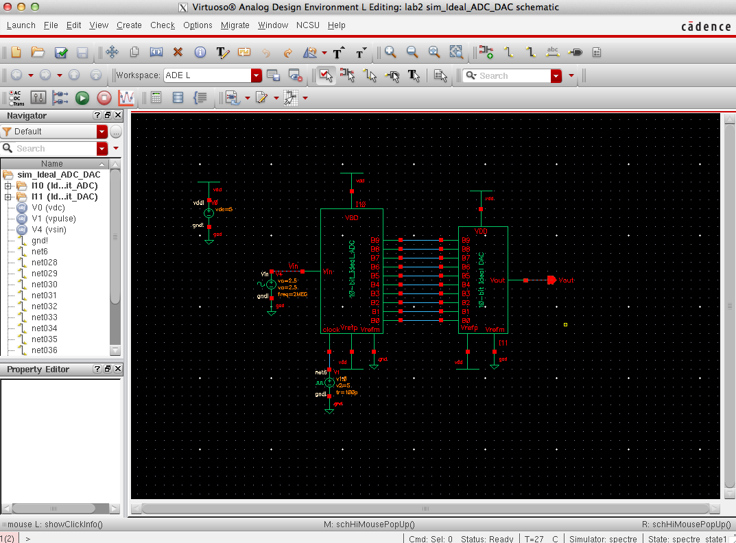 The Library manager will appear. Go to lab2 and select sim_Ideal_ADC_DAC and select the schematic.