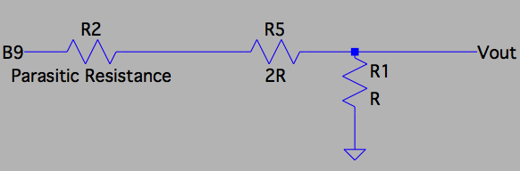 2R branch would become larger because of the transistors parasitic