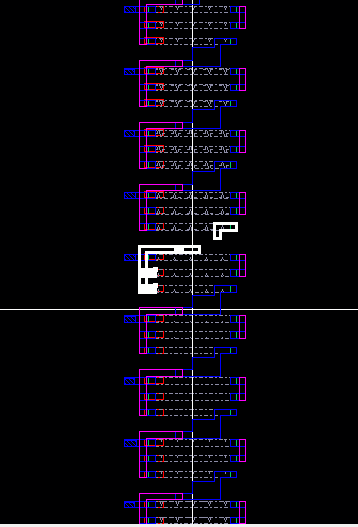 After a DRC test to verify the spacing was okay, I added metal1 connections from every bot to every top that should be connected, then did a DRC test.