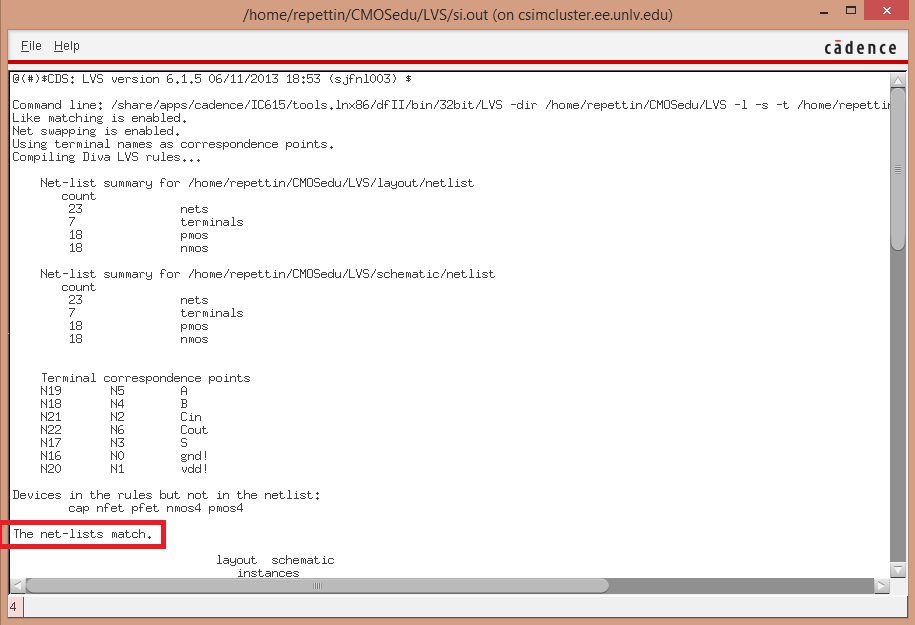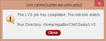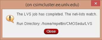 Now lets do a LVS. The setup and results are seen below: