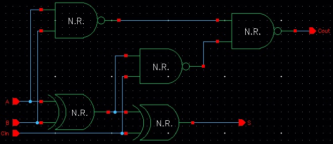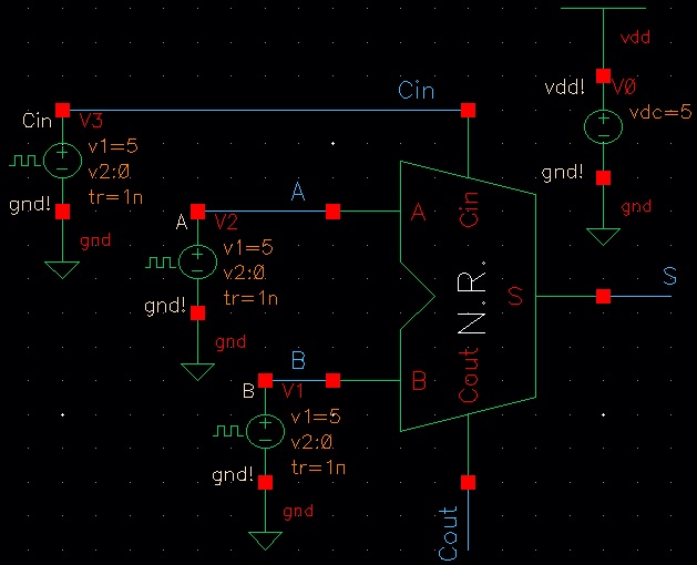 Next we must design the full adder. The schematic and symbol are seen below: