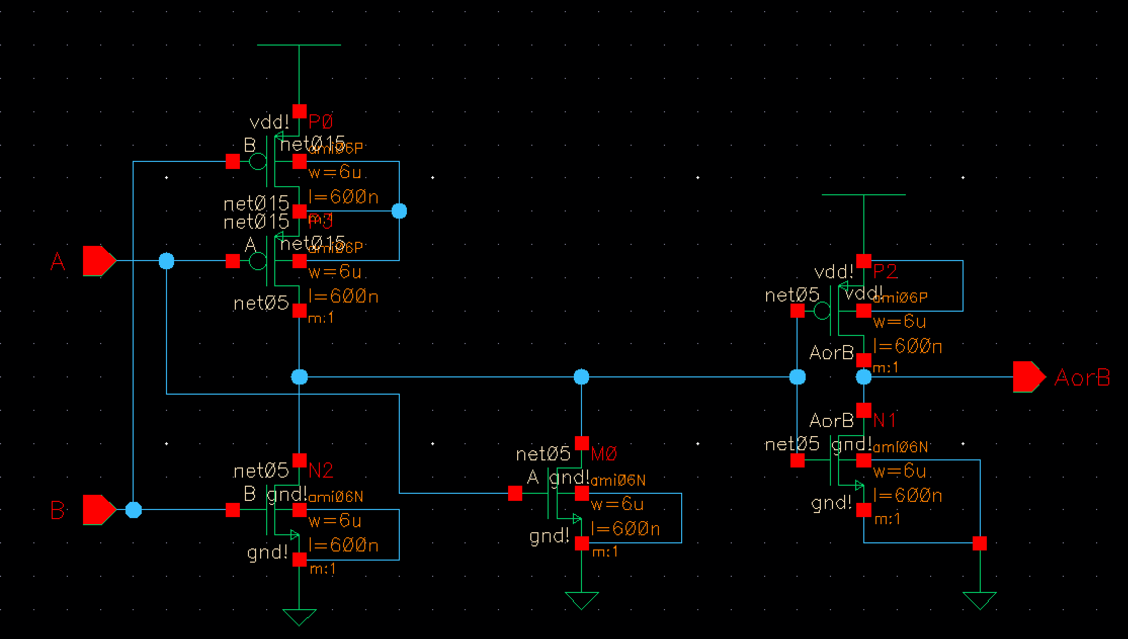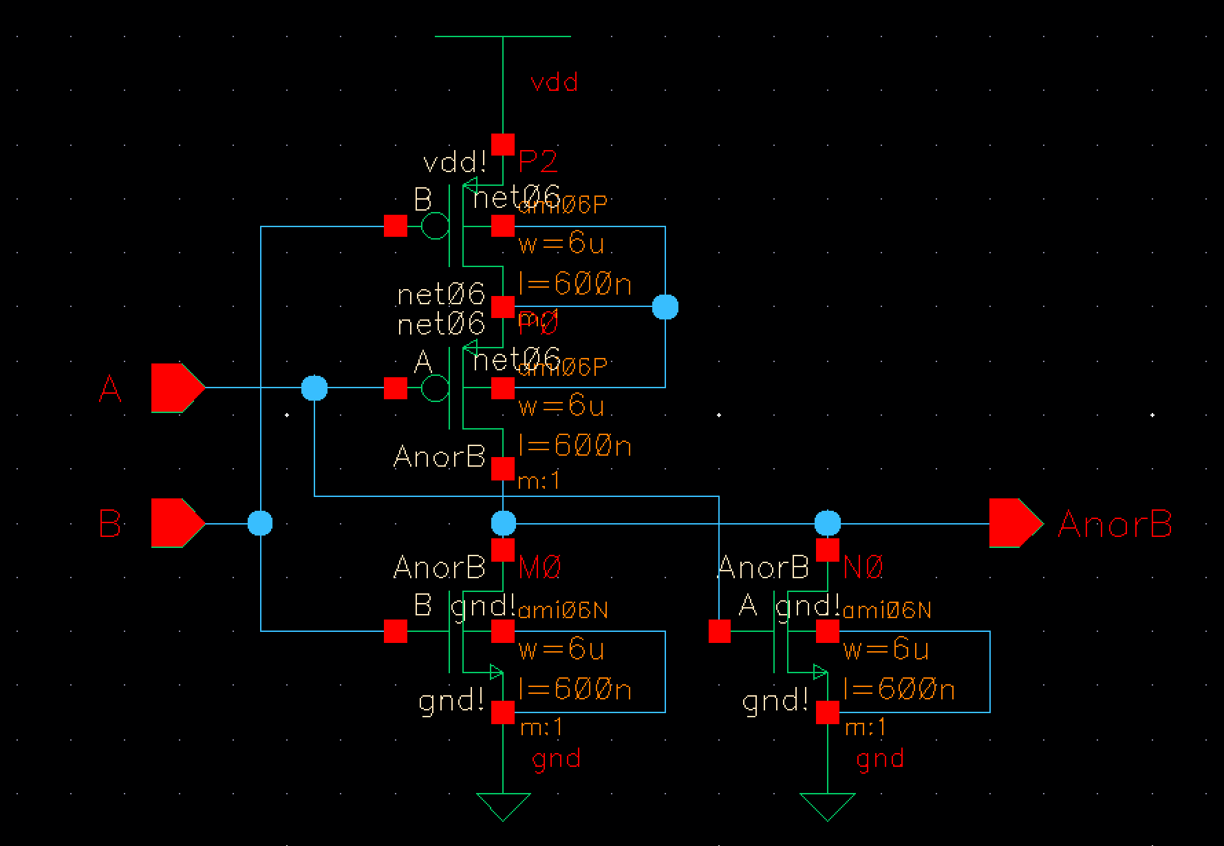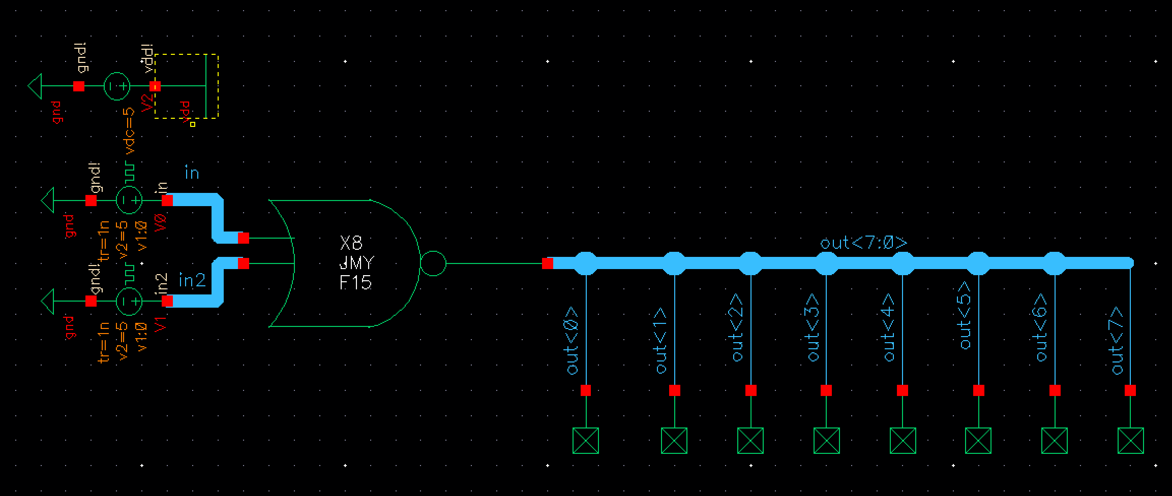 This image shows the simulation schematic of an 8-bit NOR gate.