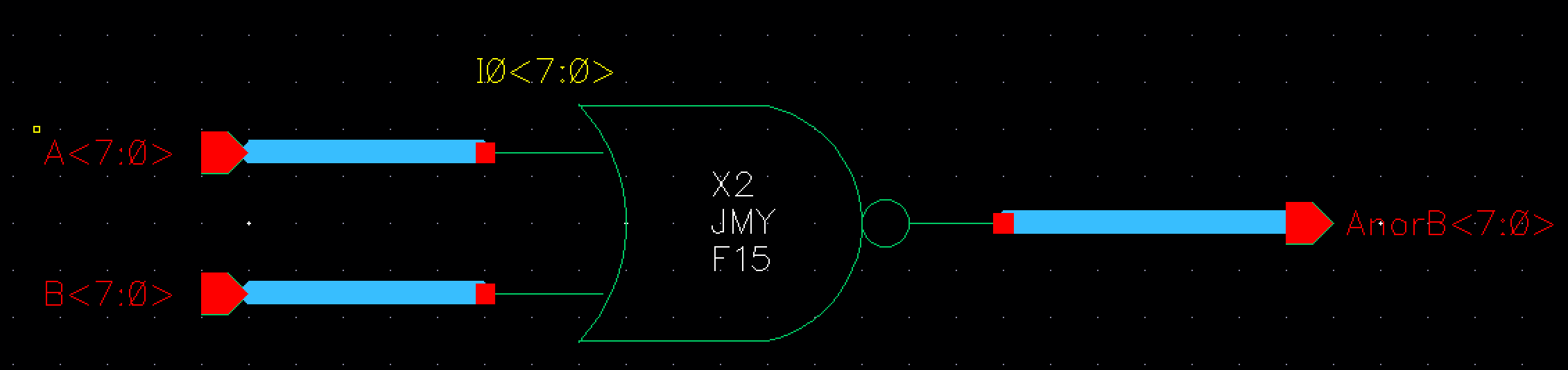 This image shows the schematic of an 8-bit NOR gate, using the symbol in the previous figure for instantiation.