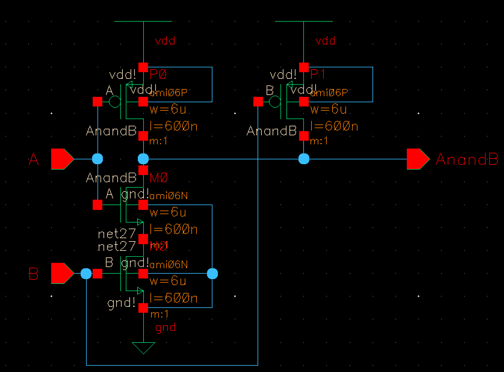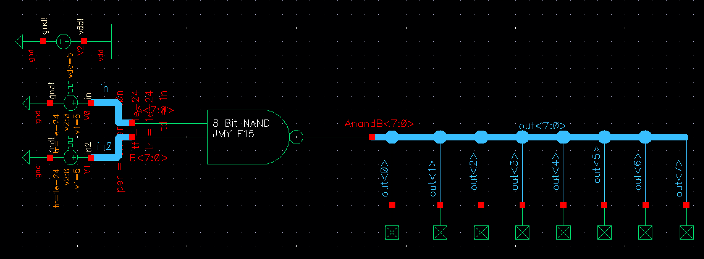 This image shows the simulation schematic of an 8-bit NAND gate.
