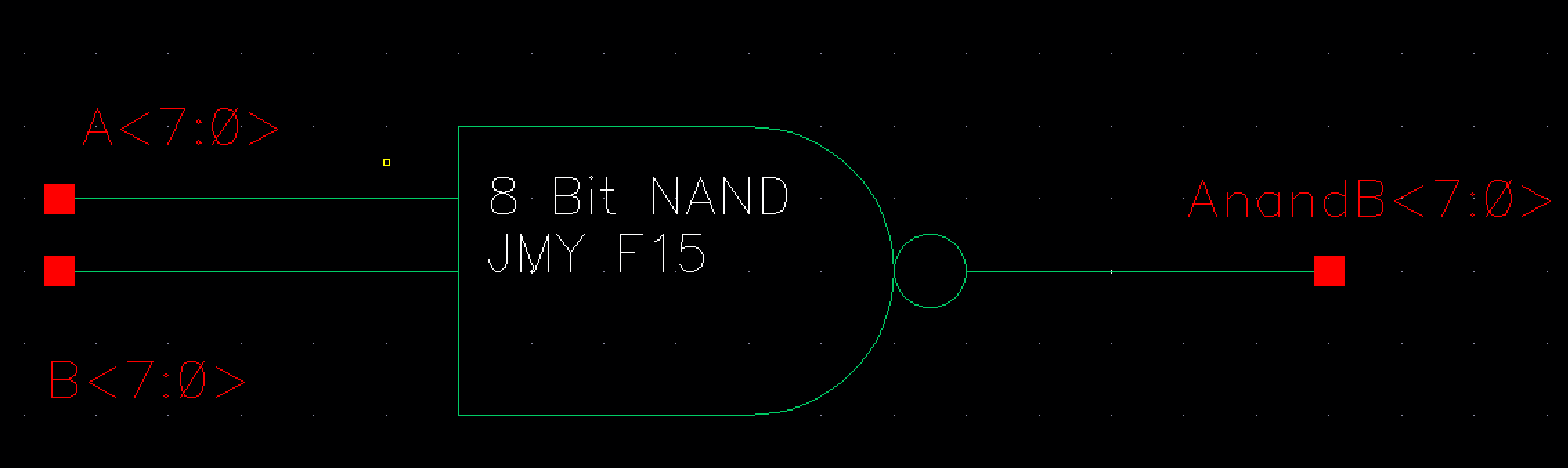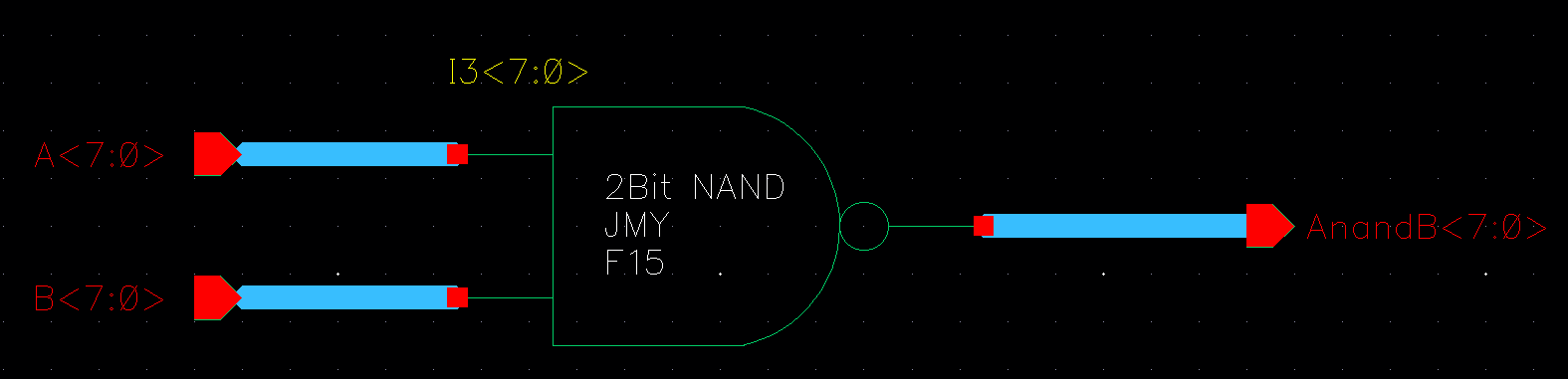 This image shows the schematic of an 8-bit NAND gate, using the symbol in the previous figure for instantiation.