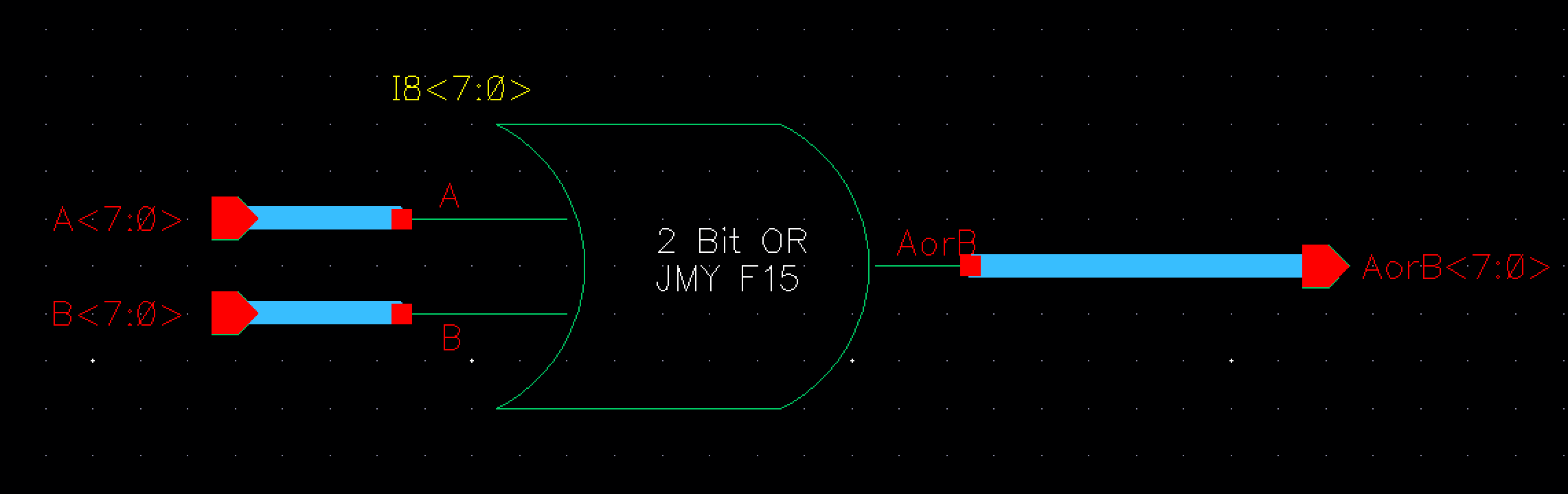This image shows the schematic of an 8-bit OR gate, using the symbol in the previous figure for instantiation.