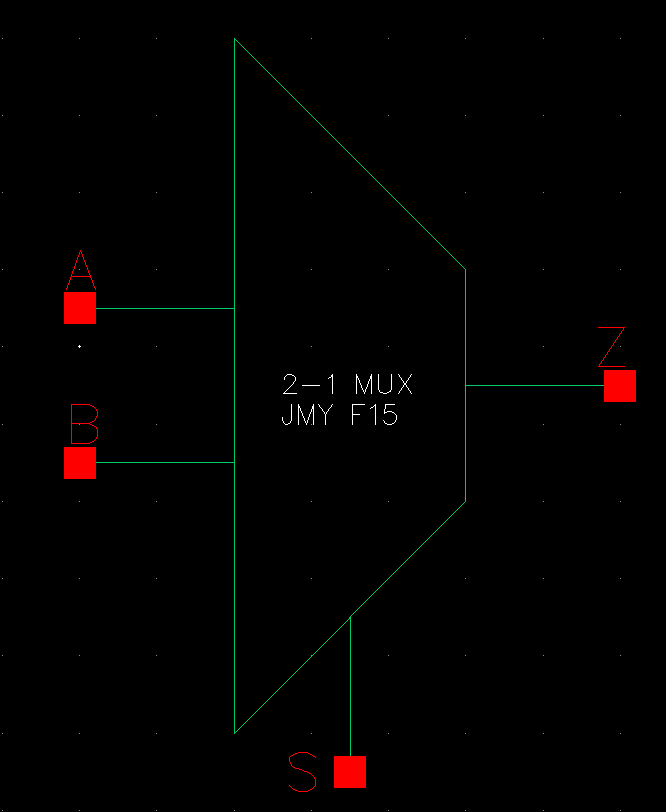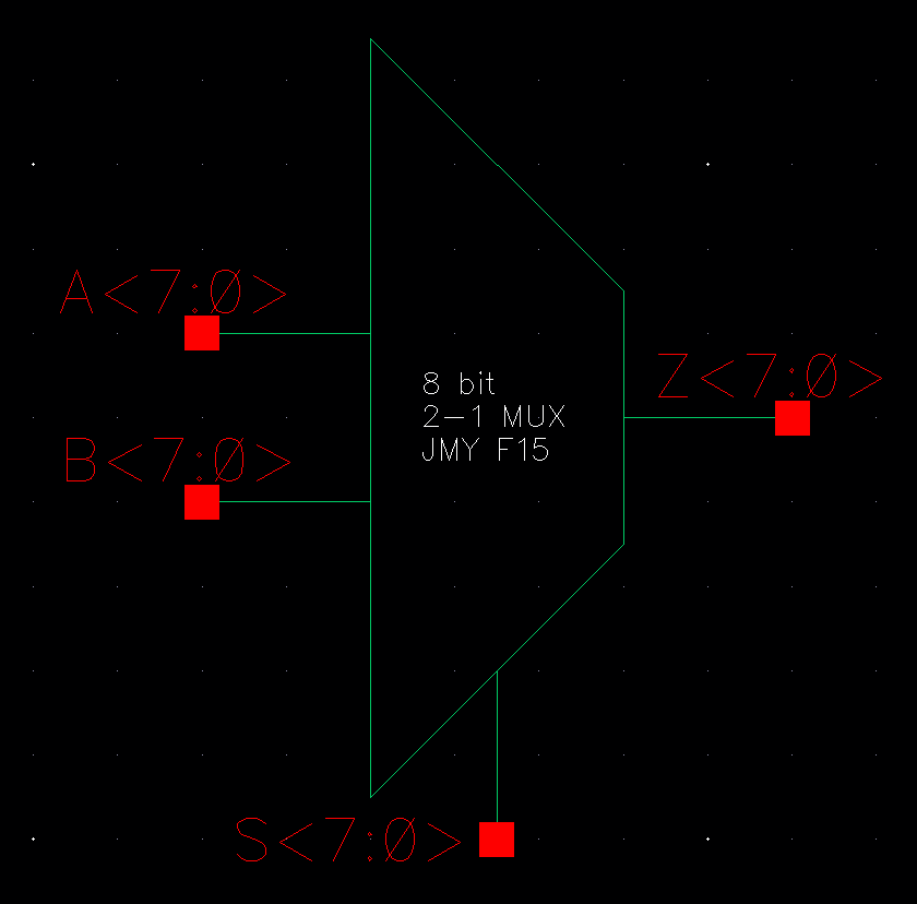This image is the symbol of a 2-to-1 MUX, created from the schematic in the previous image.