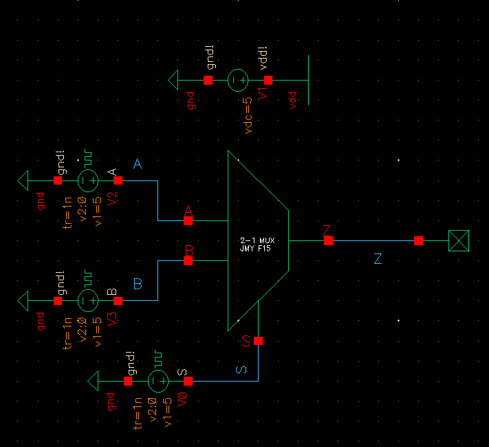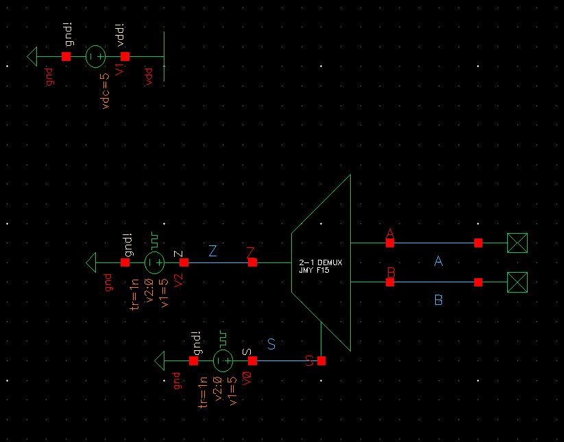 This image is the simulation schematic of the 2-to-1 DEMUX.