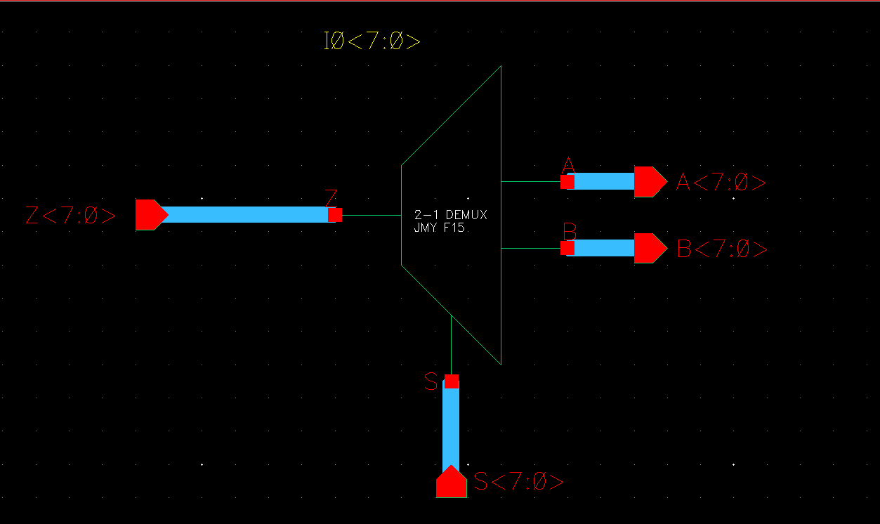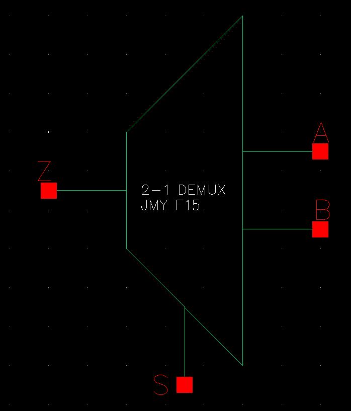 This image is the symbol of a 2-to-1 DEMUX, created from the schematic in the previous image.