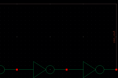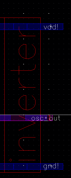 This image shows the close-up of figure 9, showing the right most side with the connections to vdd!, gnd!, and osc_out as shown previously in figure 2.
