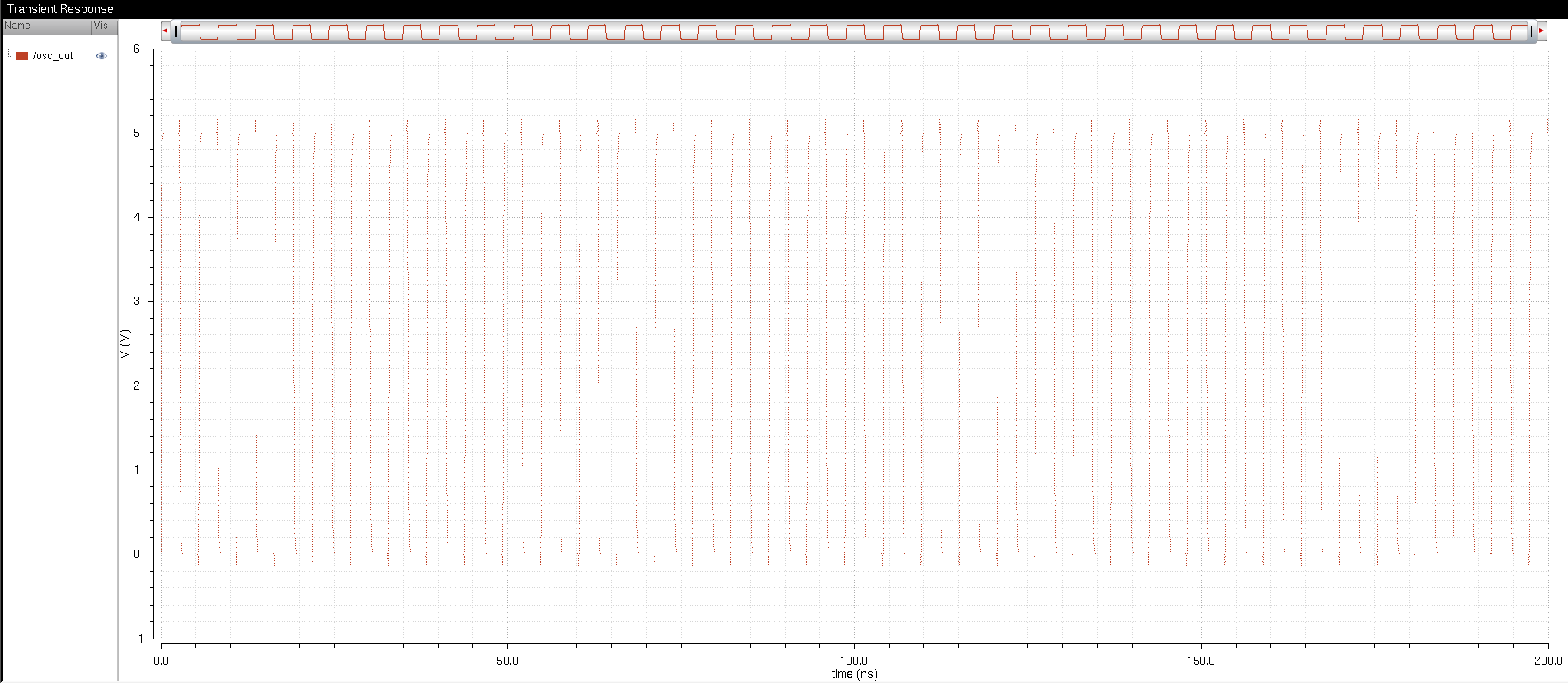 This image shows the simulation of the 31-ring oscillator showing that it oscillates on and off continuously.