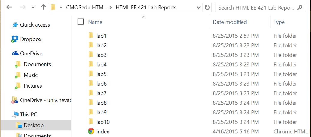 - The lab reports will be drafted using html and placed on CMOSedu.