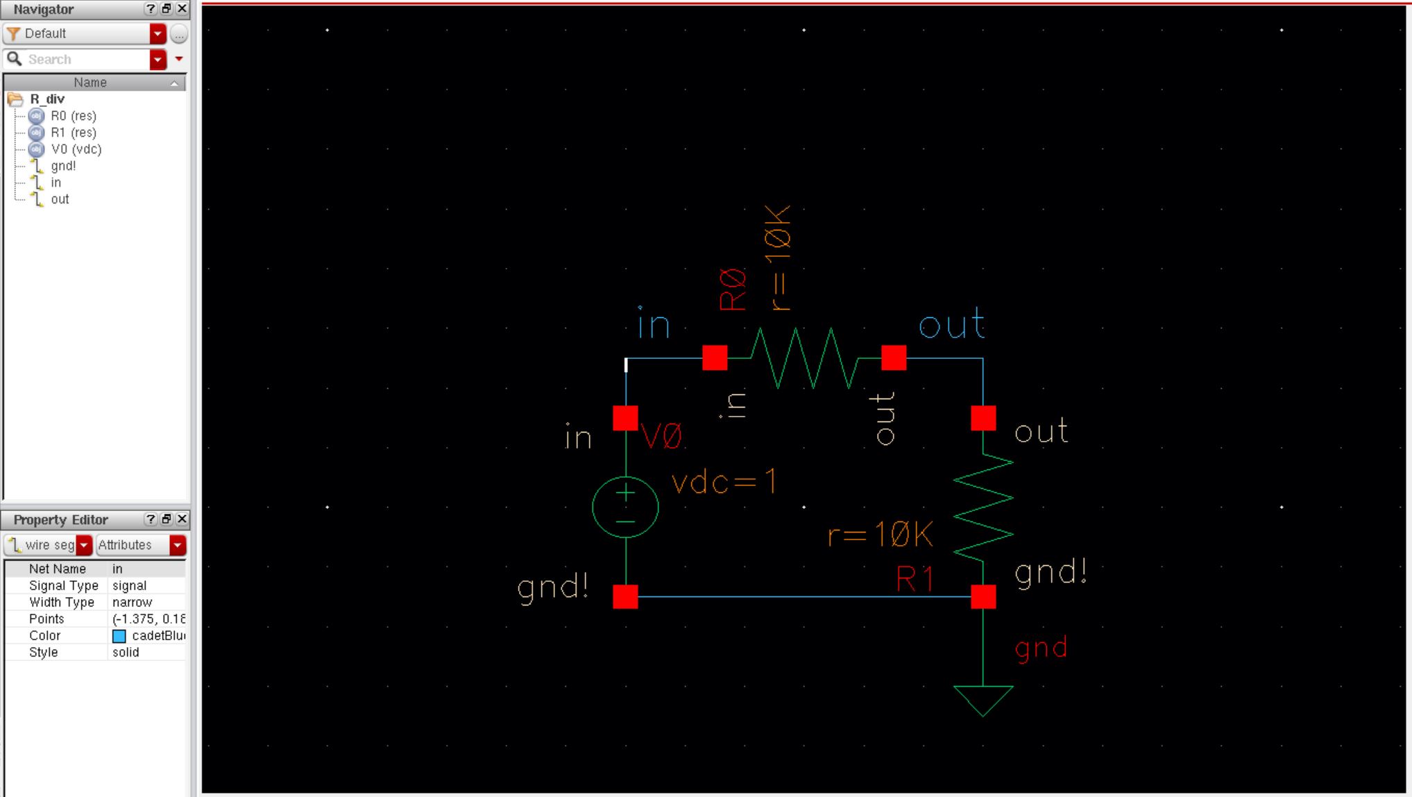 simple voltage divider schematic, and then simulate the results through