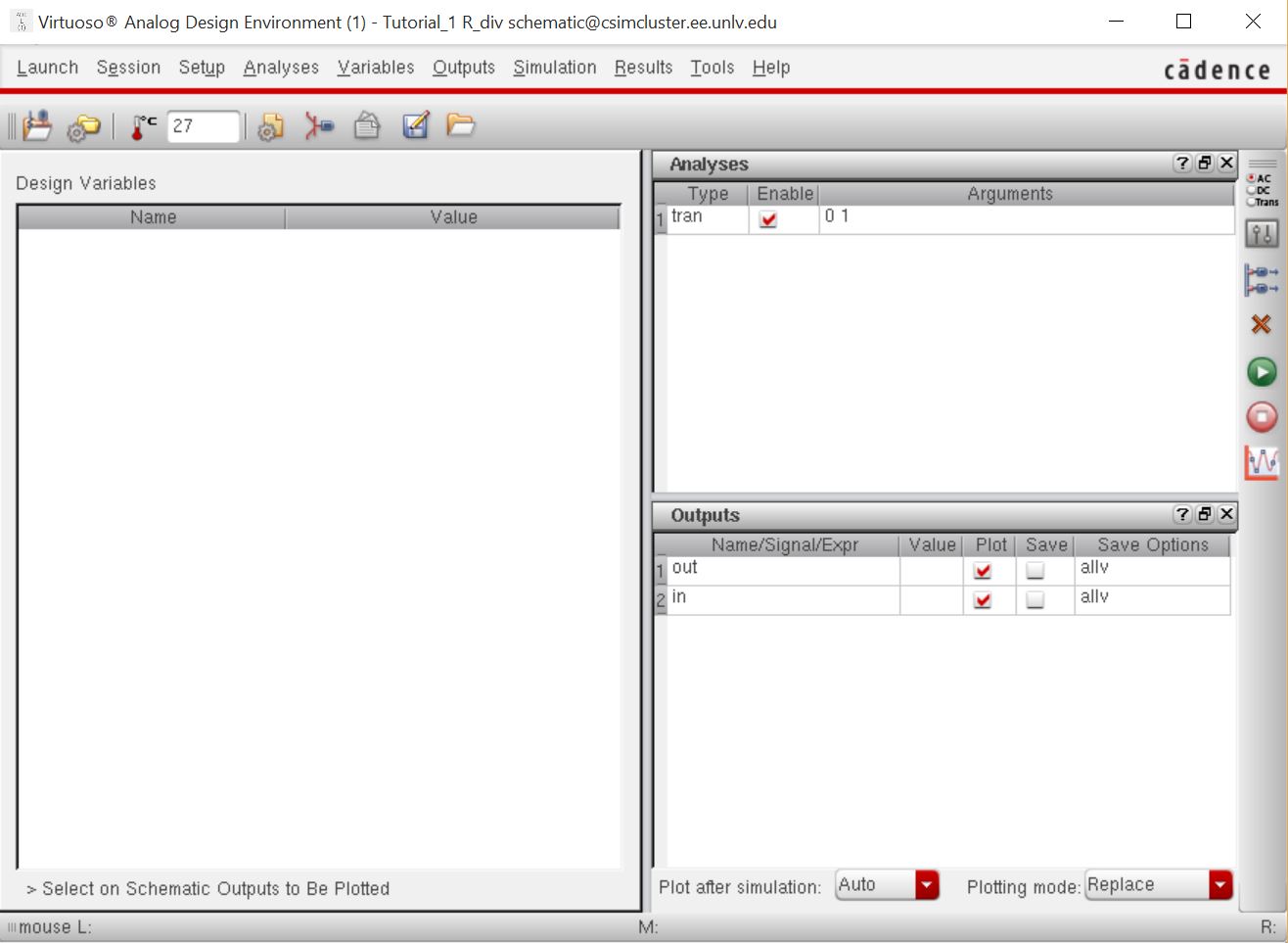 tran simulation, and set my outputs as nodes labeled earlier via the