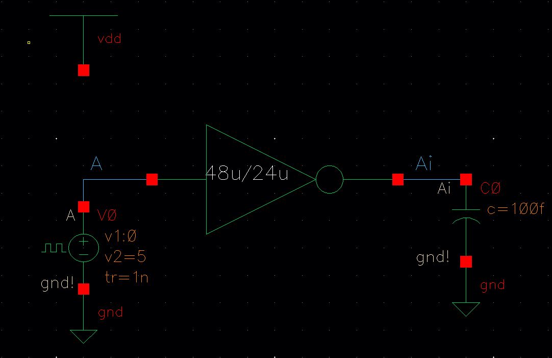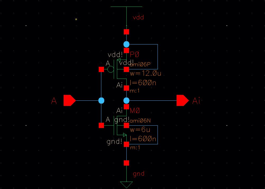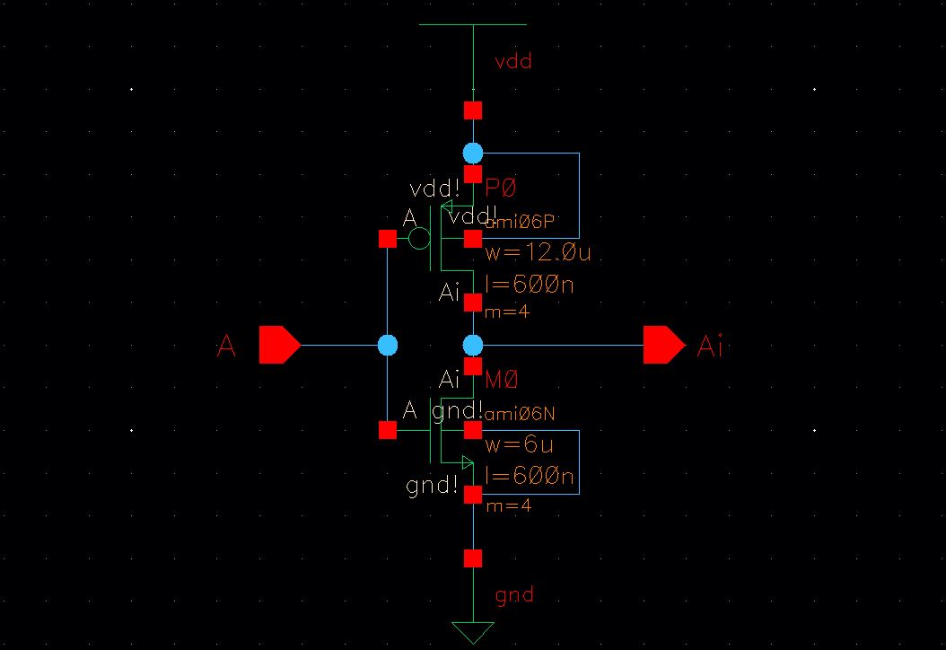 - Your layouts should have 4 pins: A, Ai, vdd!, and gnd! (note how lowercase letters are used for power and ground)