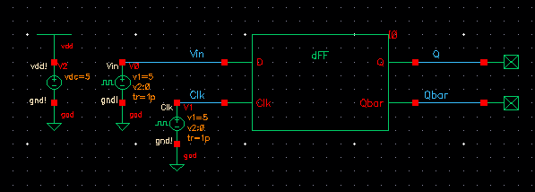 Rising Edge Triggered D-FF Schematic