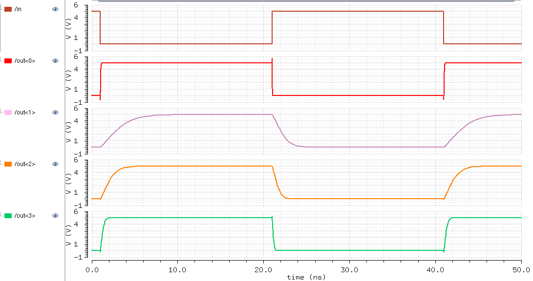 4-bit inverter simulation schematic |