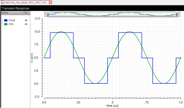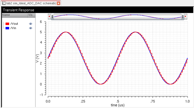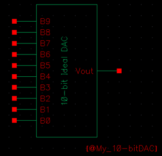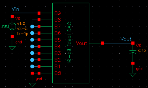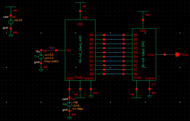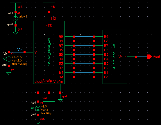 Cadence was started and the ideal 10-bit ADC and DAC schematic was opened