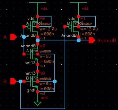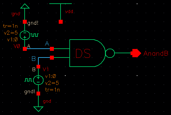 The following is the schematic that was used to test the NAND gate.