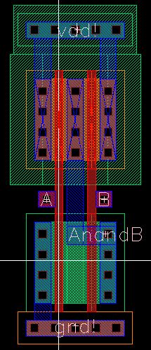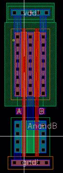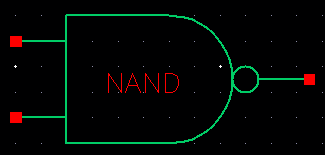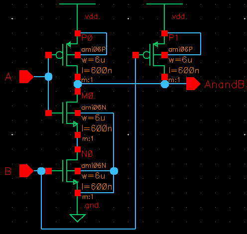 The following is the schematic layout of a 2-input NAND gate created through