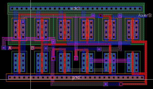 The following is the schematic layout of a 2-input XOR gate created through