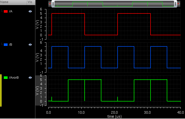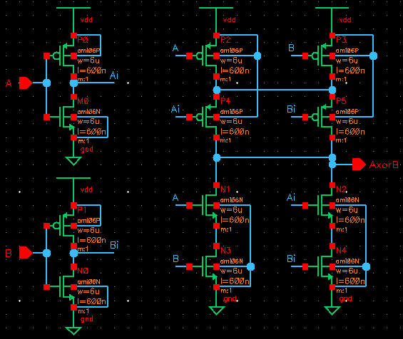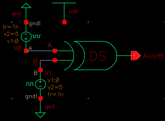 The following is the schematic that was used to test the XOR gate.