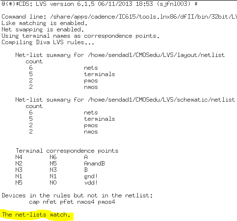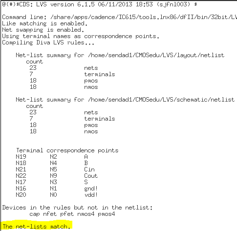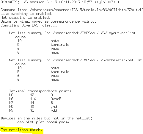 After the layout was extracted, a LVS check was ran and confirmed that the