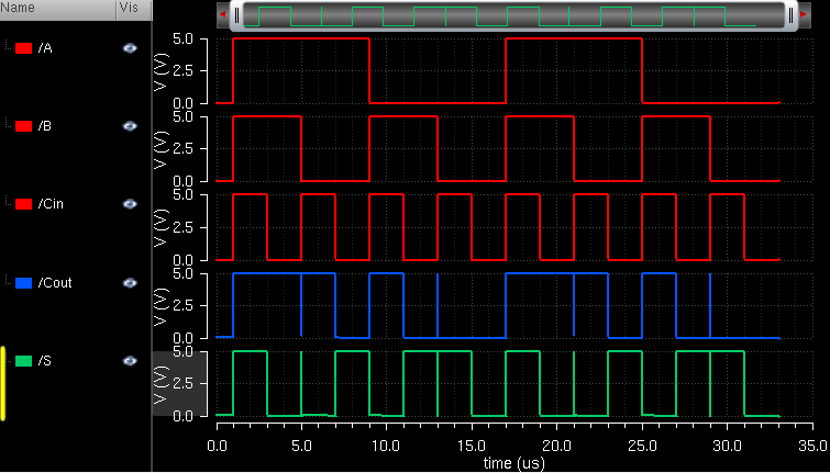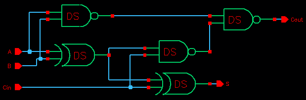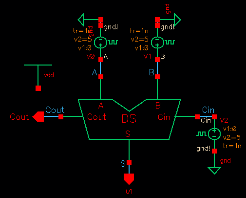 operation of the full adder, a simulation schematic was made.