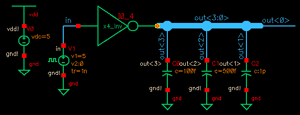 a simulation schematic to confirm proper operation of the 4 inverters using