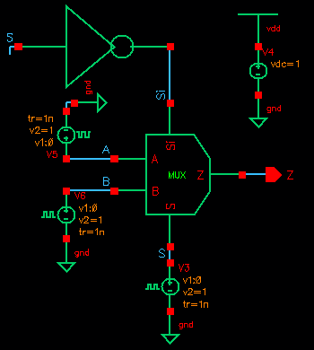 following schematic was used to simulate the MUX: