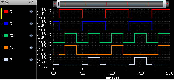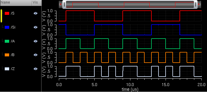 2-to-1 MUX simulation waveform: