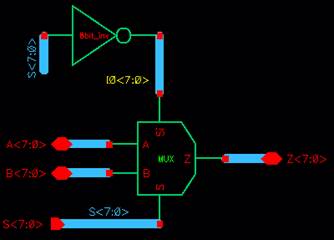 then created schematics and symbols for 8-bit input/output arrays of the