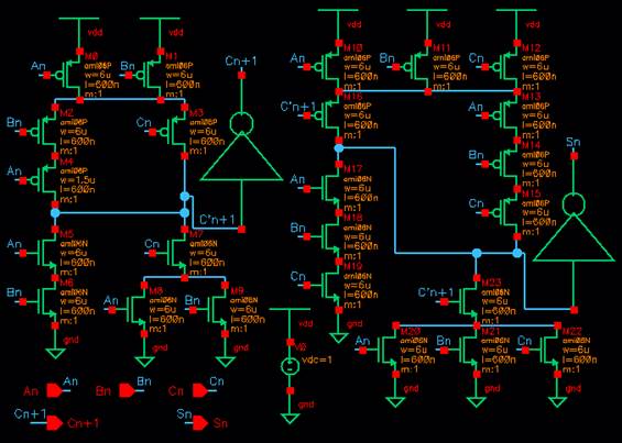 Full-adder layout view: