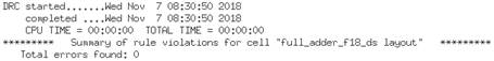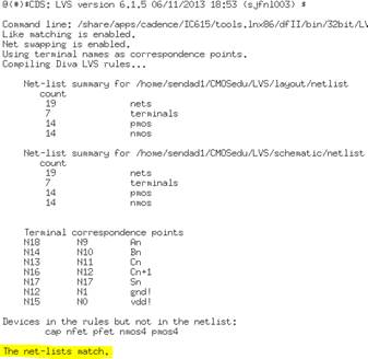 Full-adder LVS results: Shows that