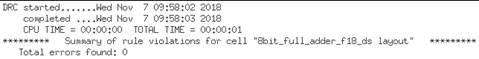 8-bit full-adder LVS results: Shows
