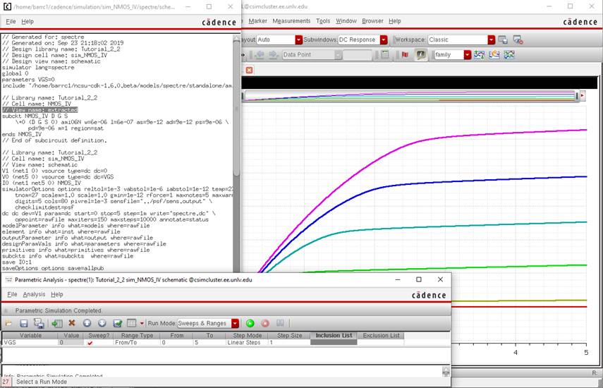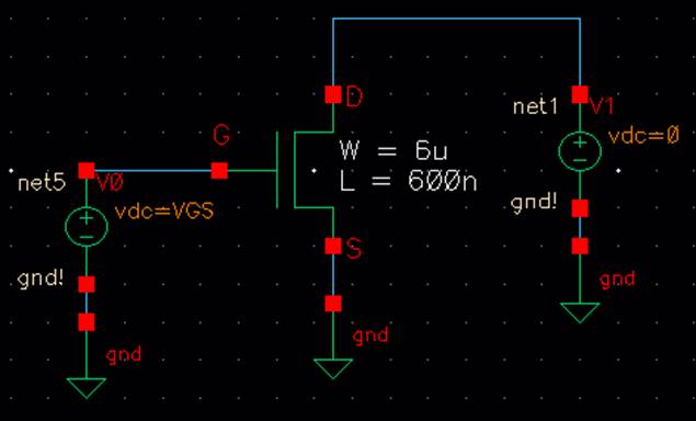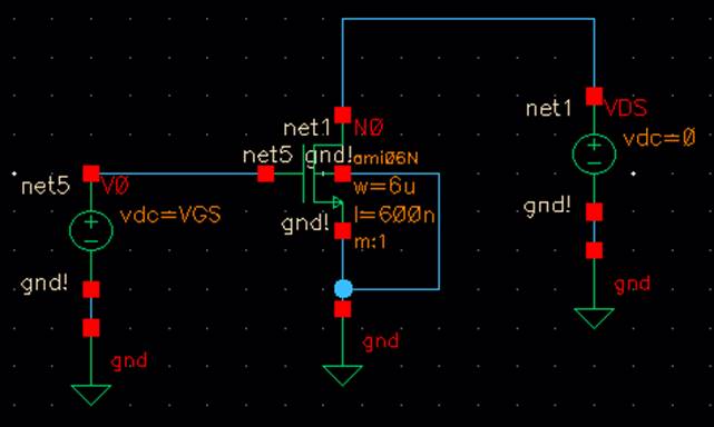 1.) A schematic for simulating ID v. VDS of an NMOS device for VGS