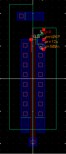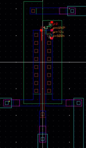 Again, I’ll start by laying out the PMOS including the via’s.