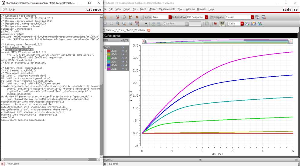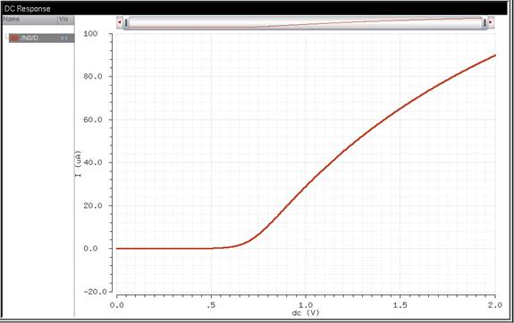 Here, you can see the 12u/600n PMOS. I used a 0 to 5V VSD in 1 mV steps,
