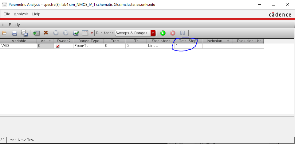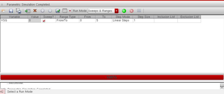 Following the instructions to set-up the Parametric Analysis view, we should