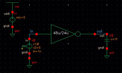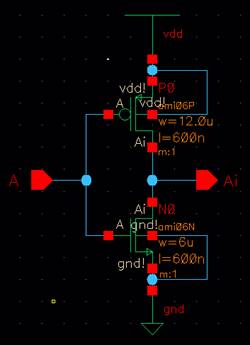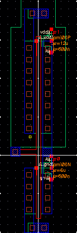 12um/6um CMOS inverter, and a 48u/24u CMOS inverter.