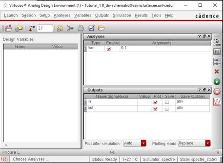 input and output wires to be plotted and set the analysis to tran.
