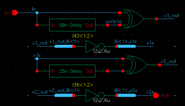 schematic is to create a delayed signal on the output of the first XOR gate.