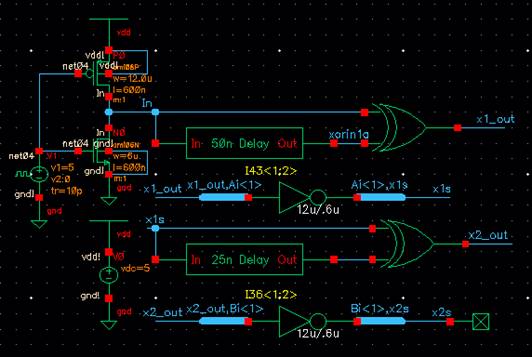 label, the 50 ns buffer, and the 1st XOR gate. The XOR gate is