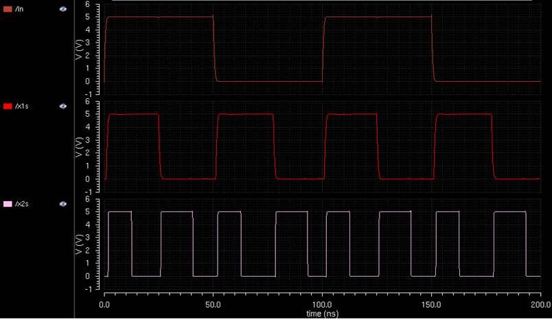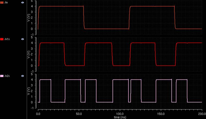 a pulse signal was connected to a transistor-level inverter which would output