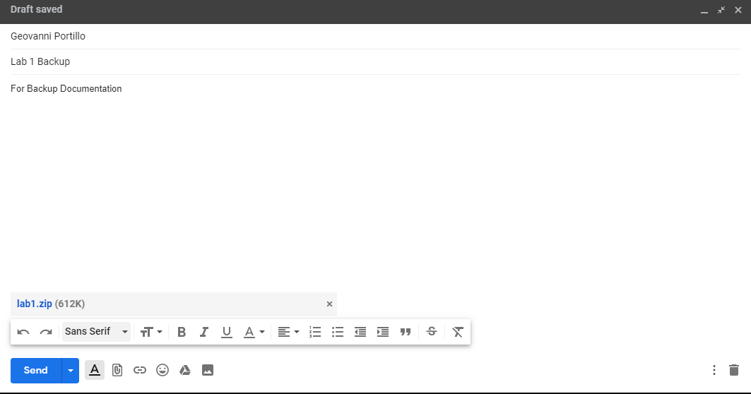 For backups, I will be zipping up the report and emailing it to myself as shown below