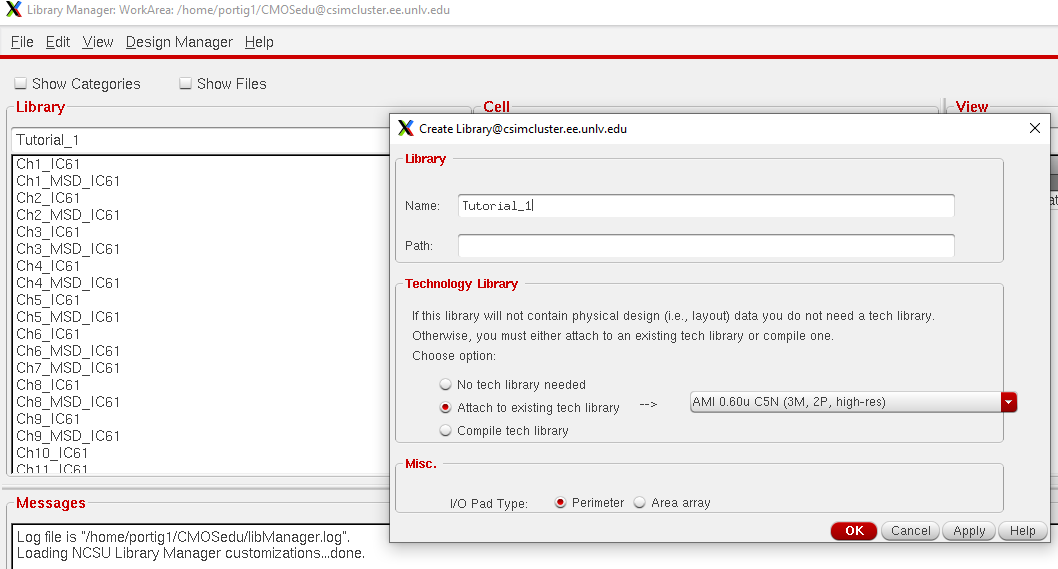 Then, we are going to create a library called 'Tutorial_1' in the library manager by clicking File -> New -> Library