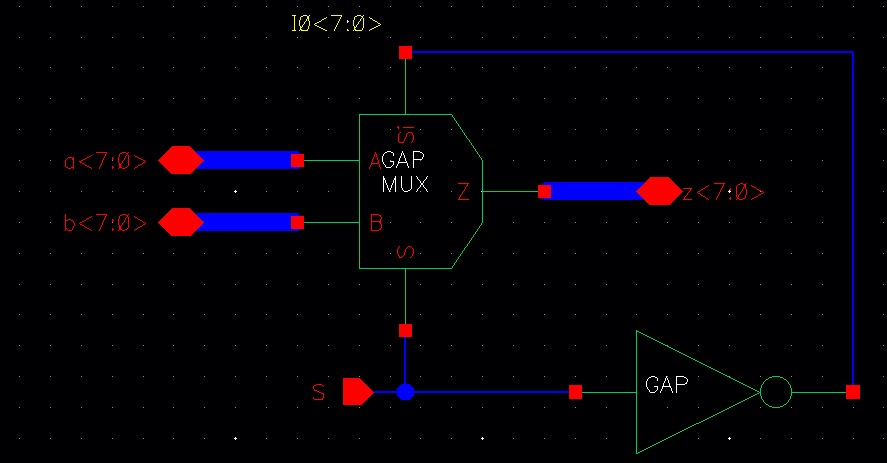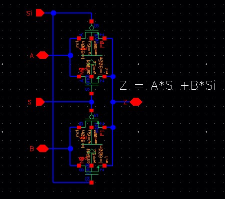 Next examine the schematic of a 2-to-1 DEMUX/MUX (and the symbol).