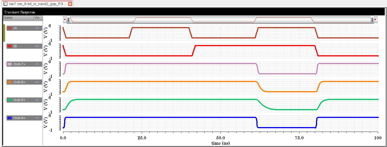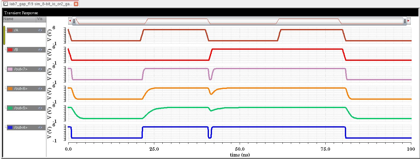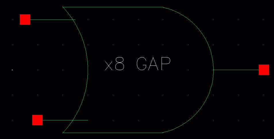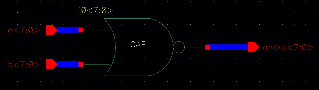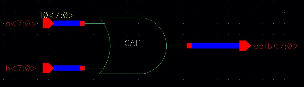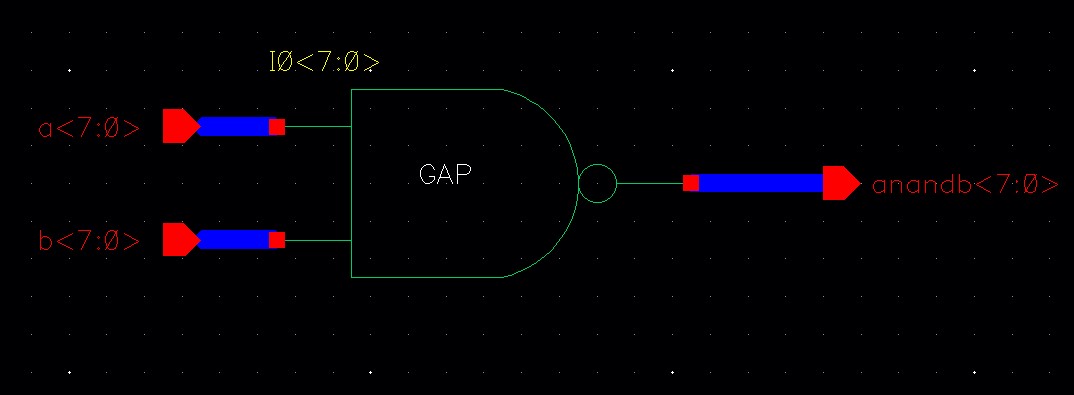 Create schematics and symbols for an 8-bit input/output array of: NAND, NOR, AND, inverter, and OR gates.