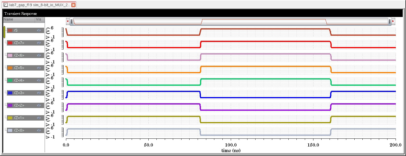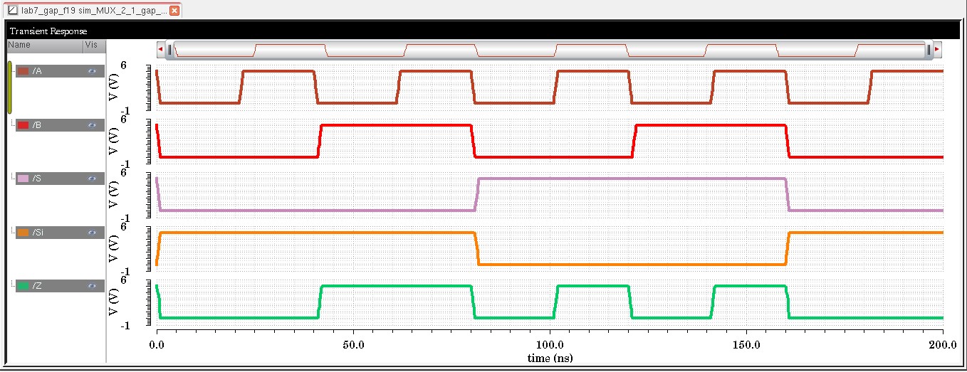 As seen in the MUX plot, when S is set to '0', the output becomes that of the B input and when S is set to '1' the output is becomes that of the A input.
